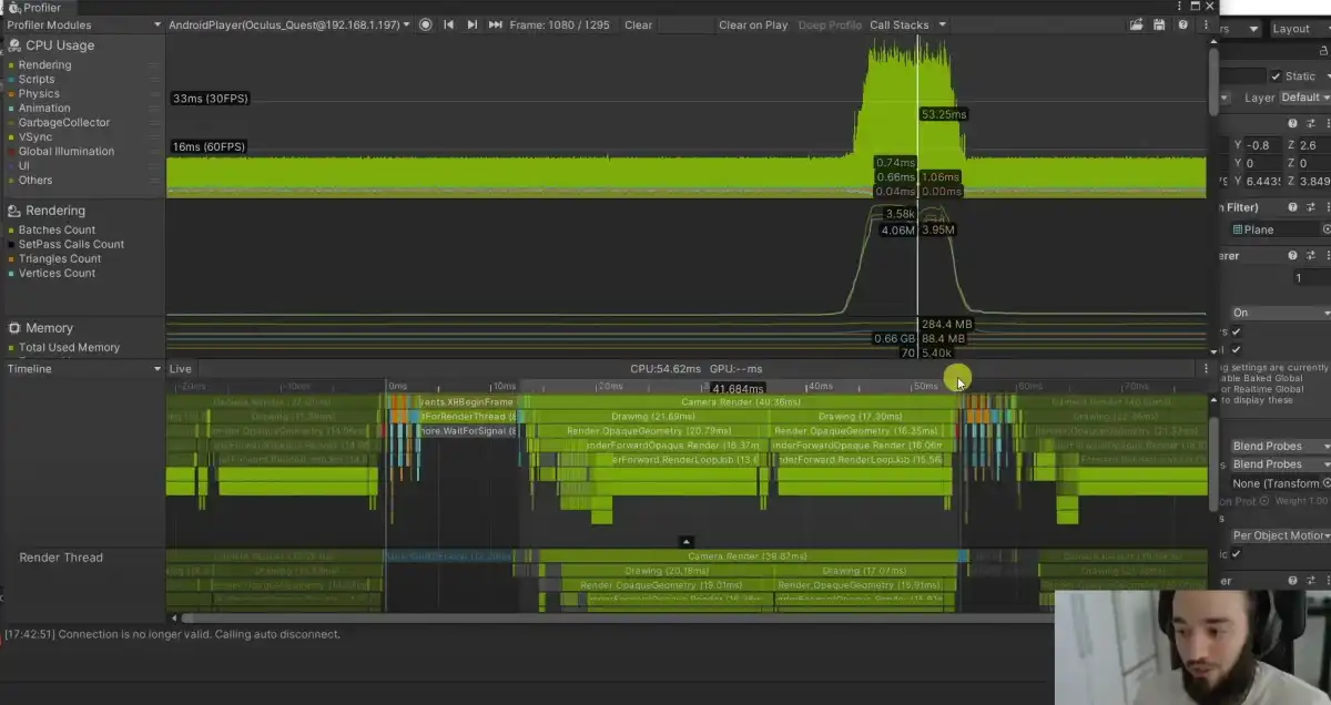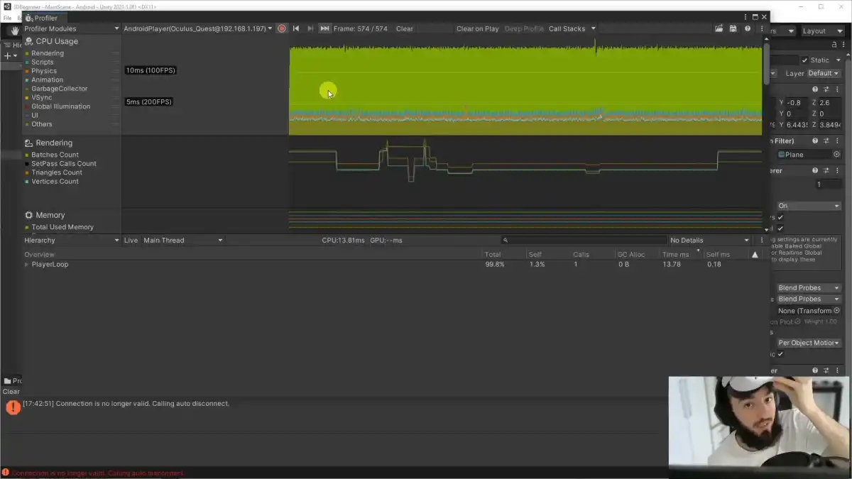 Make sure that you’re recording on the profiler and put the headset on again. Don’t forget to close your eyes so the 20 FPS don’t hurt your brain.