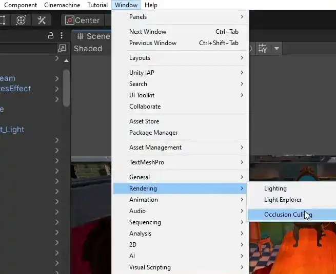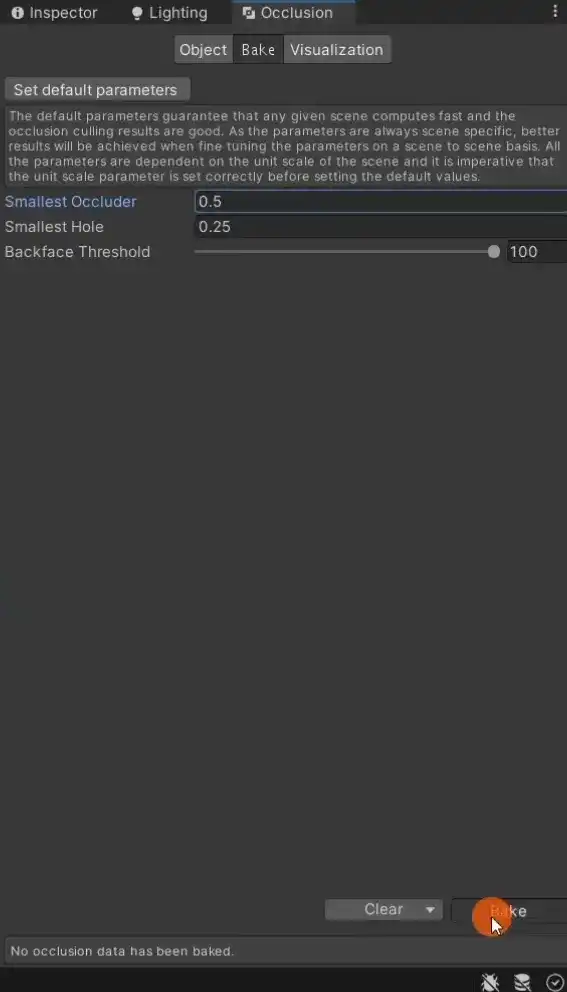 We can disable that visualization by just switching to another tab of the occlusion culling window, like bake.